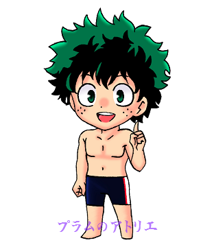 プラムのアトリエ 僕のヒーローアカデミア 緑谷 出久 デク 水着ver ミニキャラ ちびキャラ イラスト
