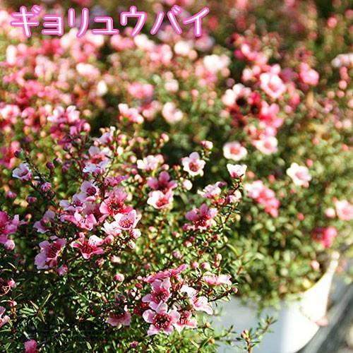 ギョリュウバイ(御柳梅) かぎけんweb ギョリュウバイとはフトモモ科ネズモドキ属の低木です。 花図鑑をリニューアルしました。 上記リンクにてアクセスできます。ギョリュウバイ(魚柳梅) 年末の頃から毎年入荷してくる植物です。 花が梅に似ているところから名前がついているようですが、本当の名前はレプトスペルマム。 フトモモ科の植物です。 冬に花咲く貴重な植物なのですが、我家では相性がギョリュウバイ白八重花 昨年の7月以来、久々のレプトスパーマムのご紹介でございます。 この時期「ギョリュウバイ」と呼ばれる低木がよく出回るようになります。 主に赤やピンクのウメのような花を付けた、何とも和風の雰囲気の植物なのです
